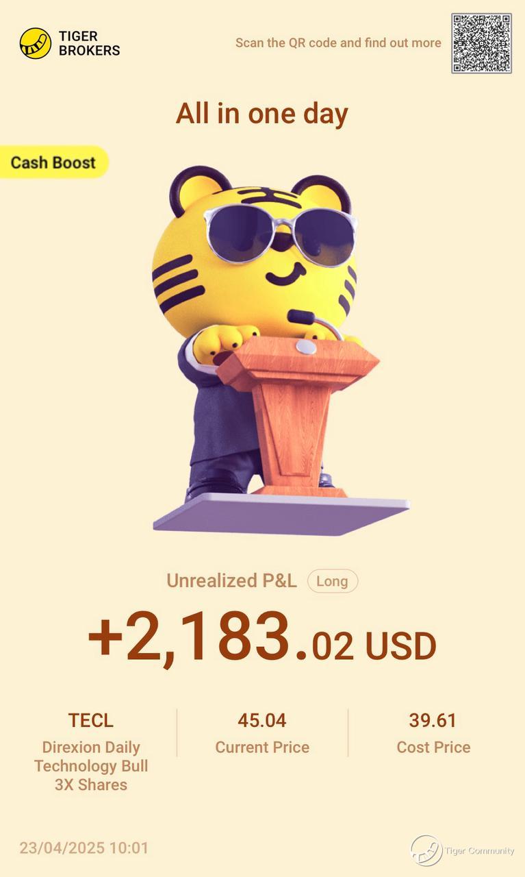$Direxion Daily Technology Bull 3X Shares(TECL)$ Holding $Strategy(MSTR)$ and TECL, feeling solid. TECL isn’t just aggressive, it’s the core engine of any true bull comeback. When tech rebounds, TECL leads the charge.