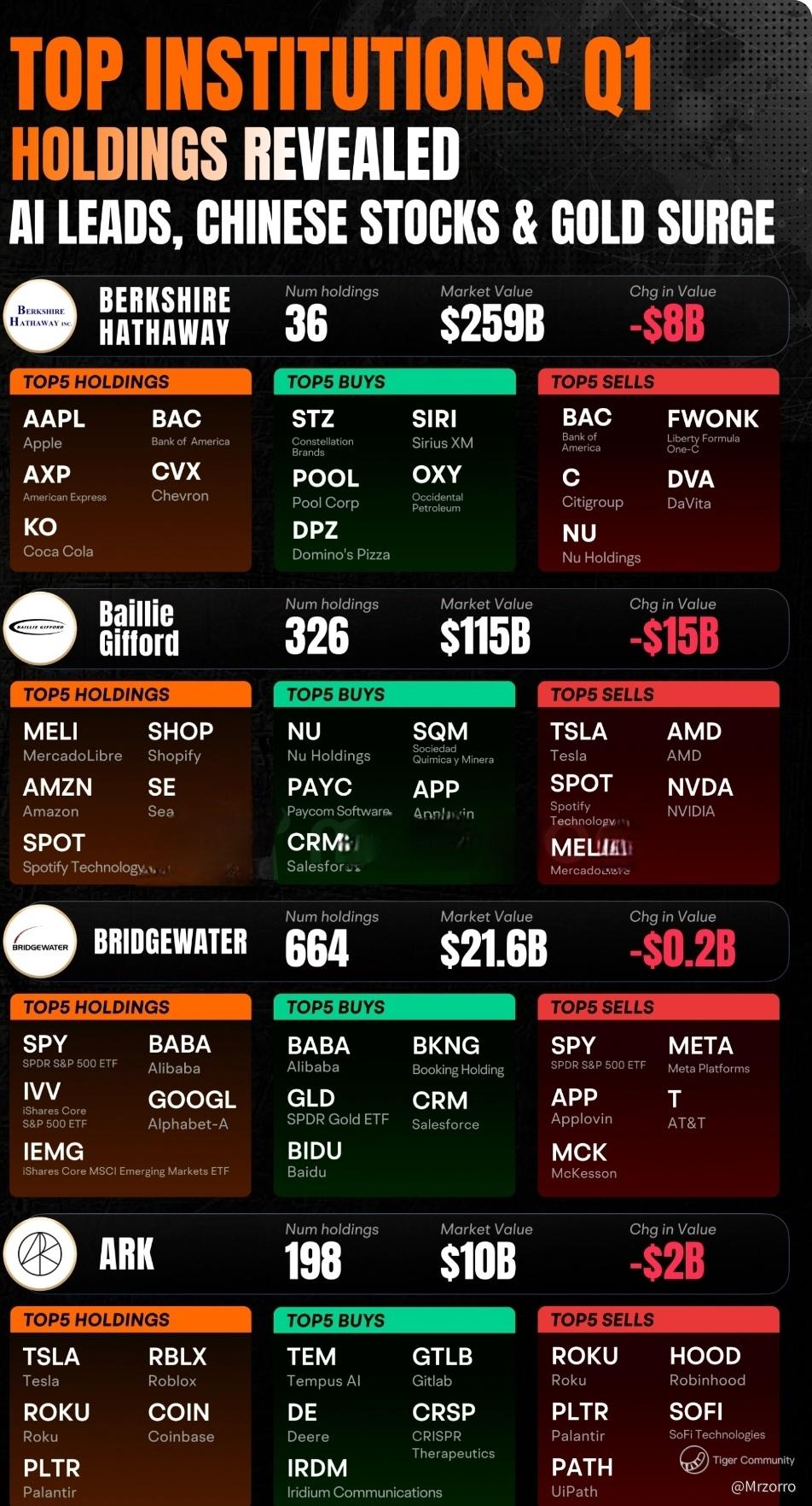 Here's a concise look at what major players like Berkshire Hathaway, Baillie Gifford, Bridgewater, and ARK Invest did—and what it means for investors.