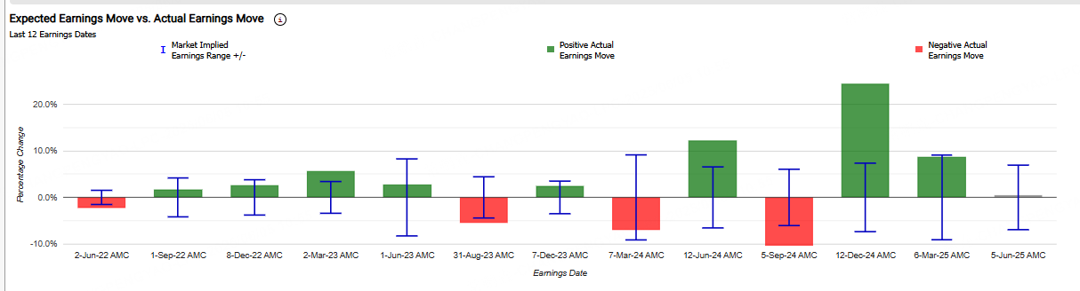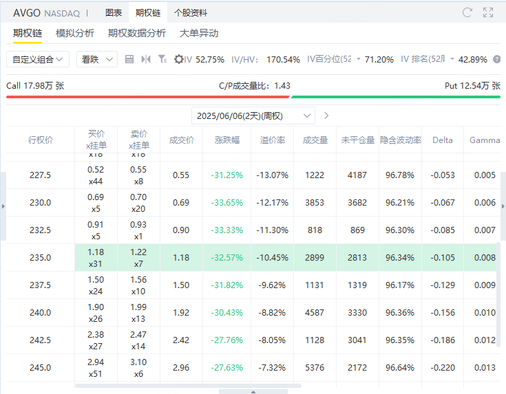 Currently, Broadcom's implied changes are±6.9%, indicating that the options market is betting on its single-day rise and fall after its performance6.9%。 The post-earnings gains and losses of AVGO in the last six quarters were-7%, 12.3%,-10.4%, 24.4%, and 8.6% respectively.