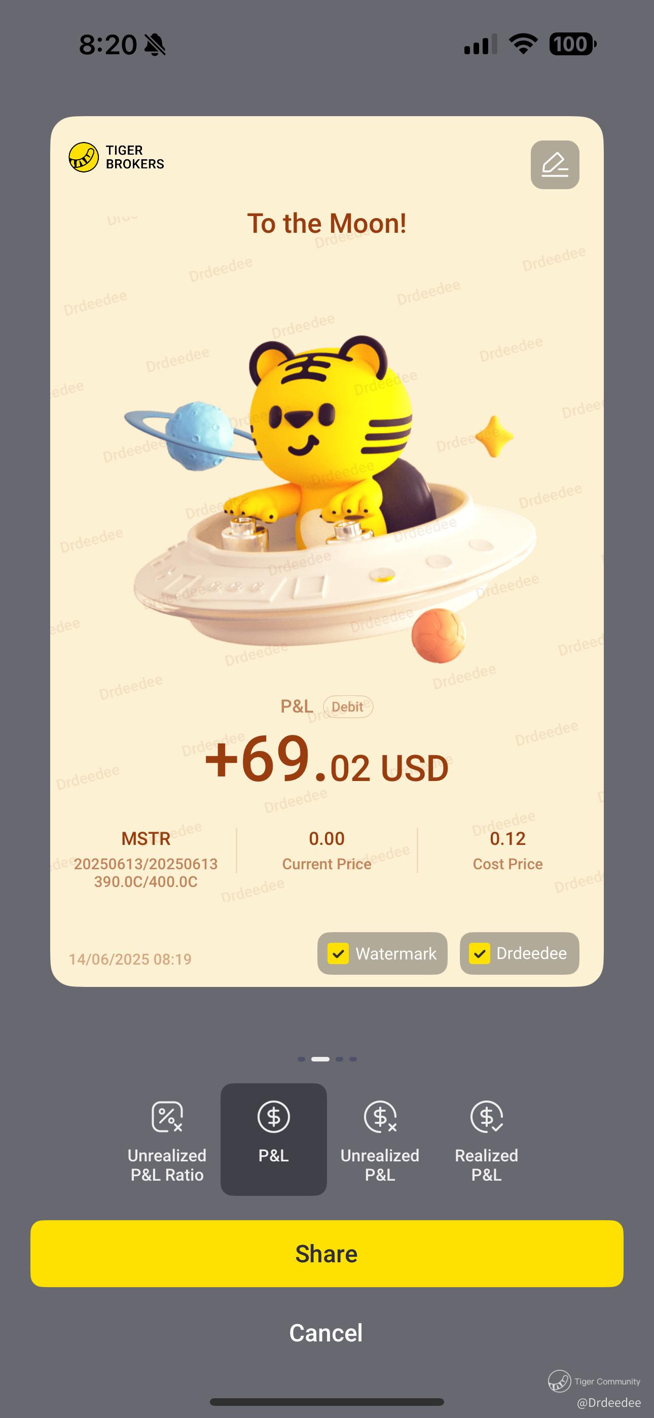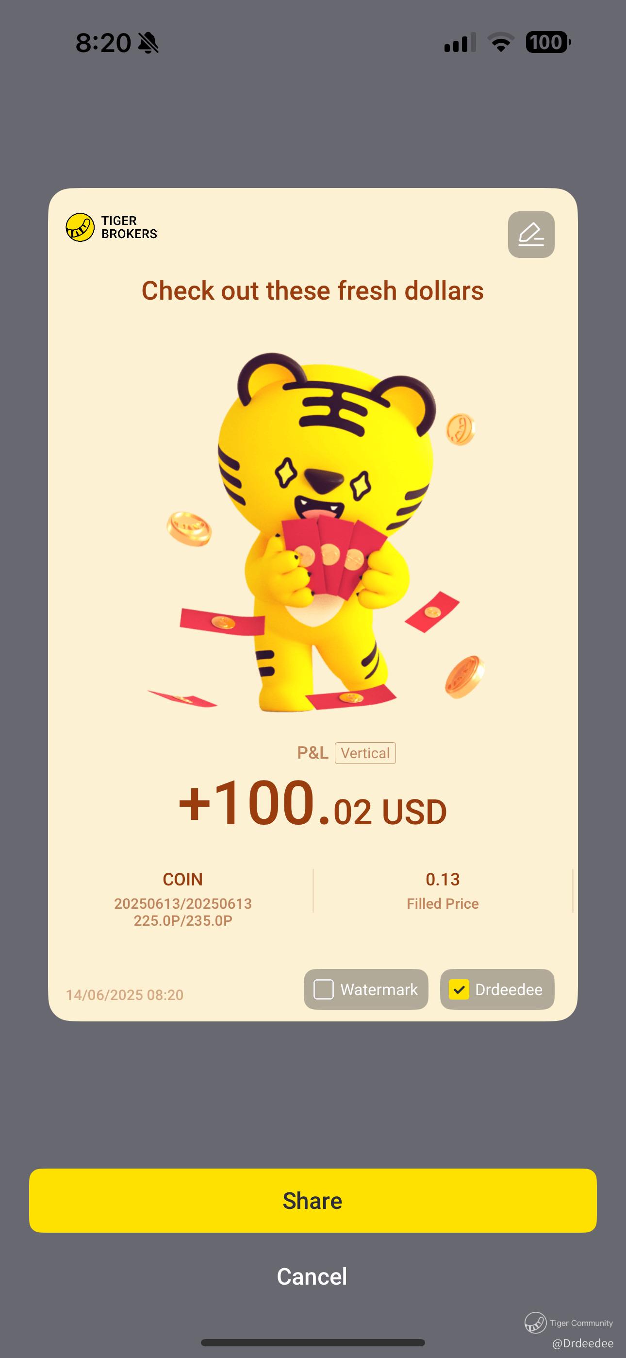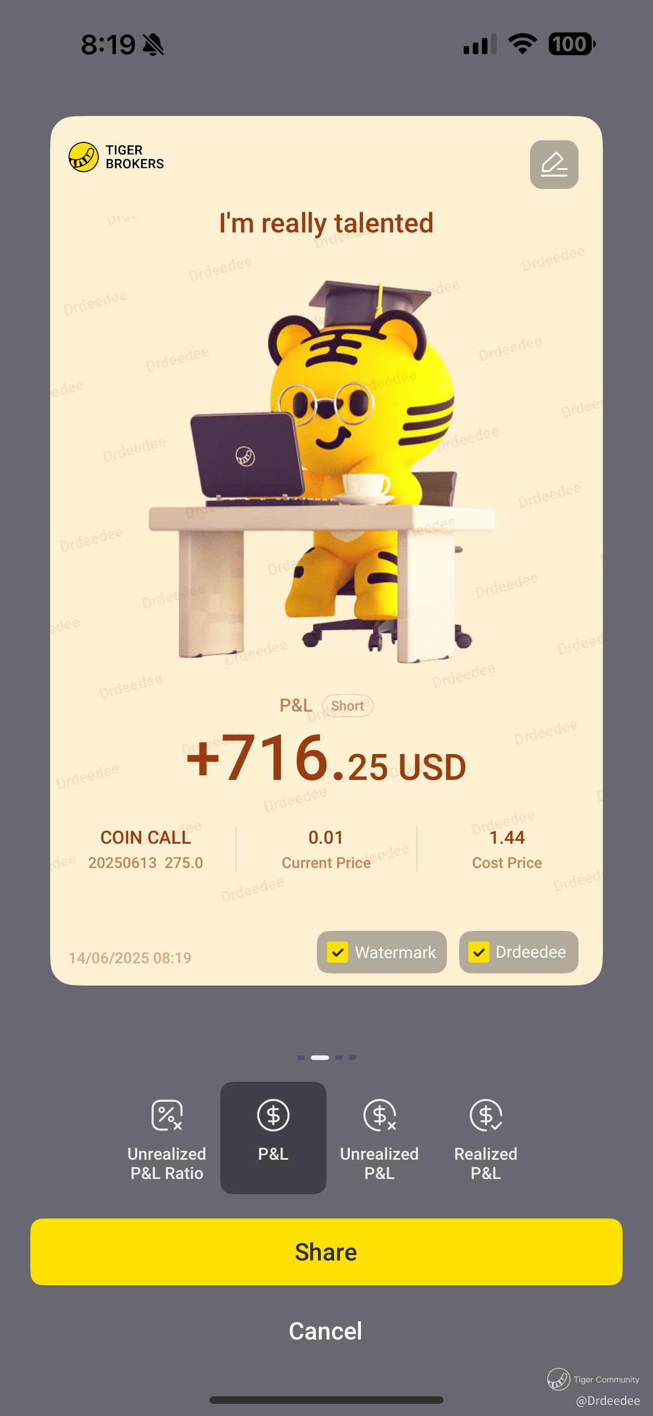 Do 3 quick trades. 1 weekly option , 2 odte options . odte can be really profitable with credit vertical spread though it may looks like small money and a bit risky. However, Need to try out odte a few more times, spread it across 3-4 companies to manage the risk, best is still to stay safe and be ready to cut loss when need to. With tiger platform option calculator, the risk management is make easy. Really love this calculator. I show it works, many options trader are stunned. Hope to conduct a class for tiger to show how useful this is to all option traders.
