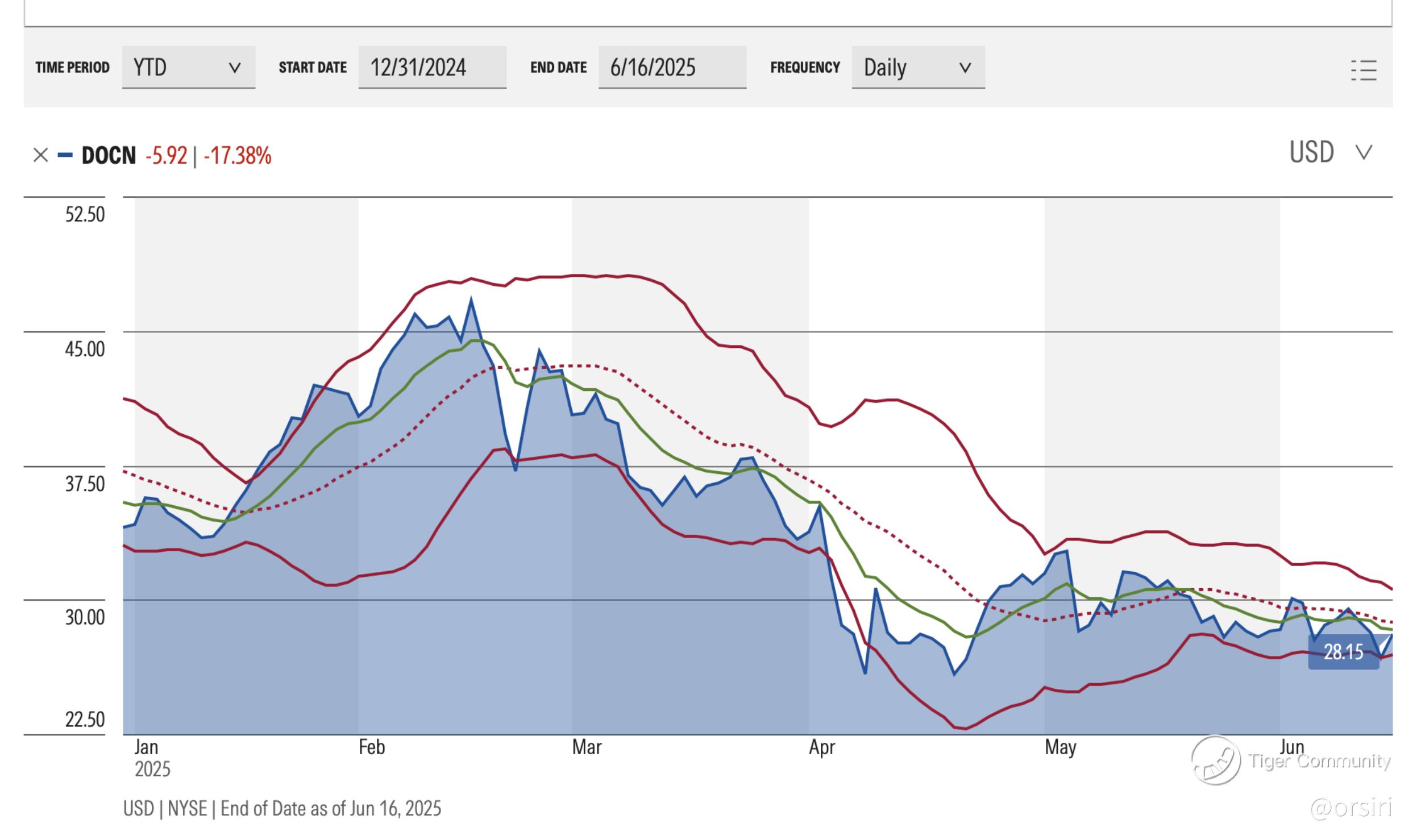 $DigitalOcean Holdings, Inc.(DOCN)$ trades at just 3x trailing sales, despite revenue growth of 14%, EBITDA margins of nearly 30%, and consistent profitability. That’s a valuation more befitting a company in secular decline, not one guiding for record-high revenue of $890 million this year. $MongoDB Inc.(MDB)$, for instance, trades at 13x sales with negative margins. Even smaller infrastructure players like $Cloudflare, Inc.(NET)$ or Fastly enjoy 6-10x multiples, despite lower free cash flow.