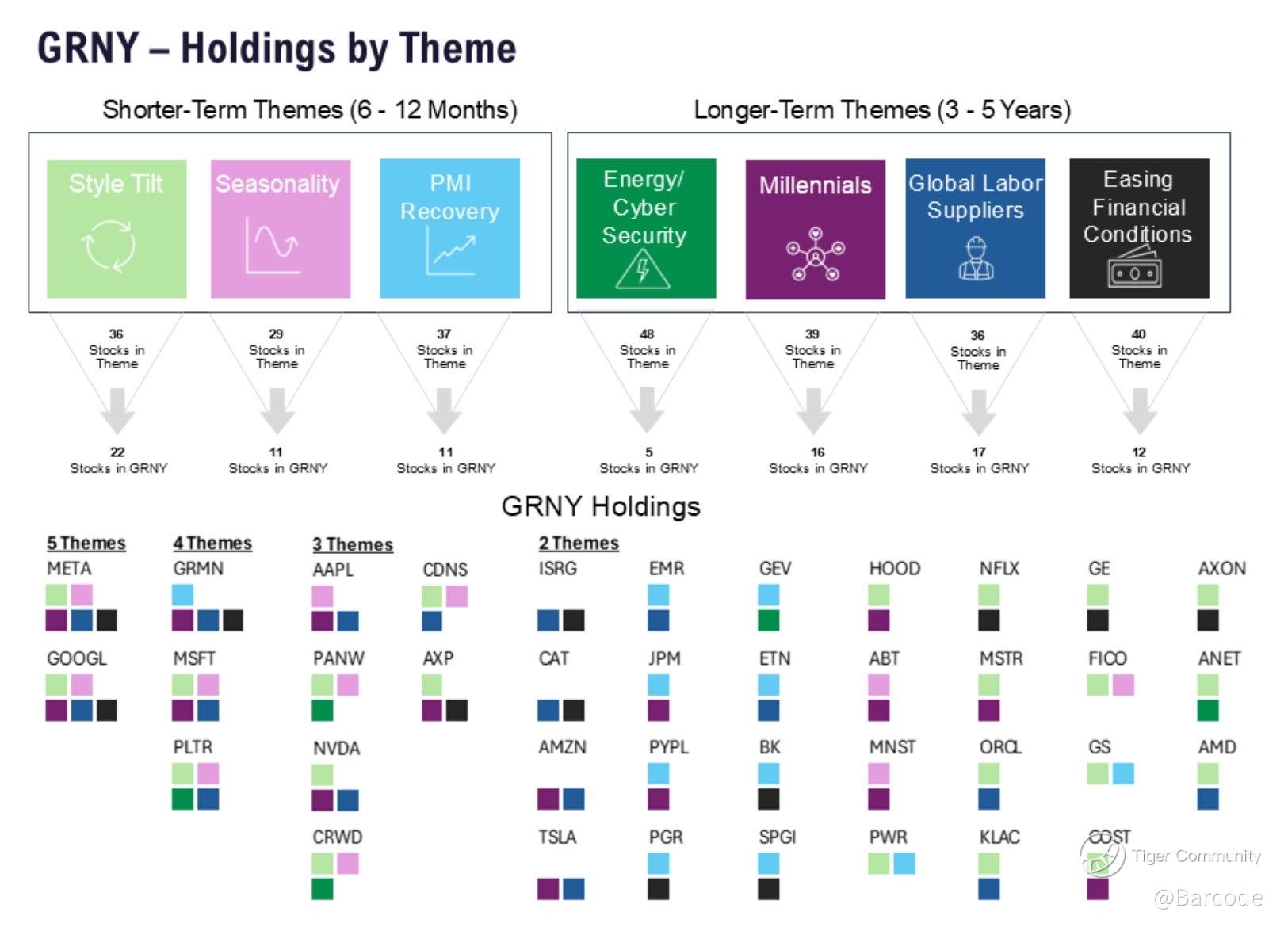 • Macro conviction (via $GRNY’s multi-theme structure)