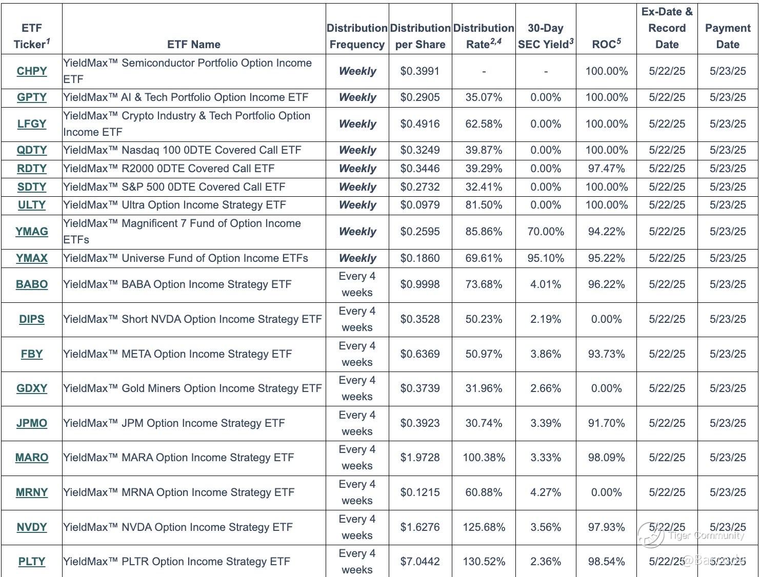 • $TSLY (Tesla), $NVDA, $PLTR, $COIN, $MSTR