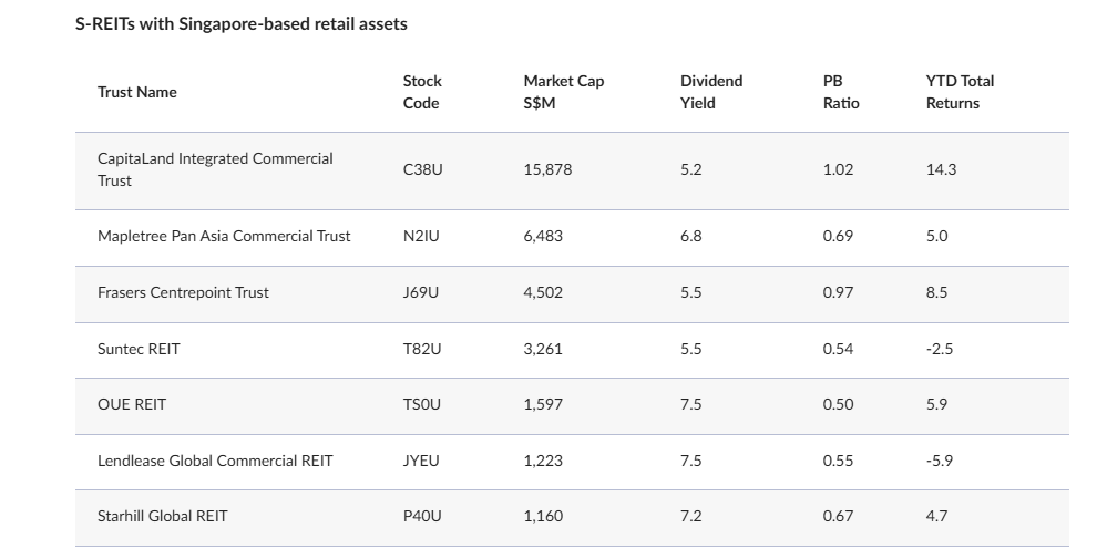 Seven Singapore-listed real estate investment trusts (S-REITs) with local retail assets have recorded improvements in revenue and net property income, supported by improved operating metrics, positive rental reversions, and robust occupancy rates.