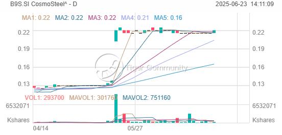On June 13, CosmoSteel Holdings executive director and CEO Jack Ong acquired 2 million shares at an average price of S$0.220 apiece, further increasing his direct interest from 17.39% to 18.15%.