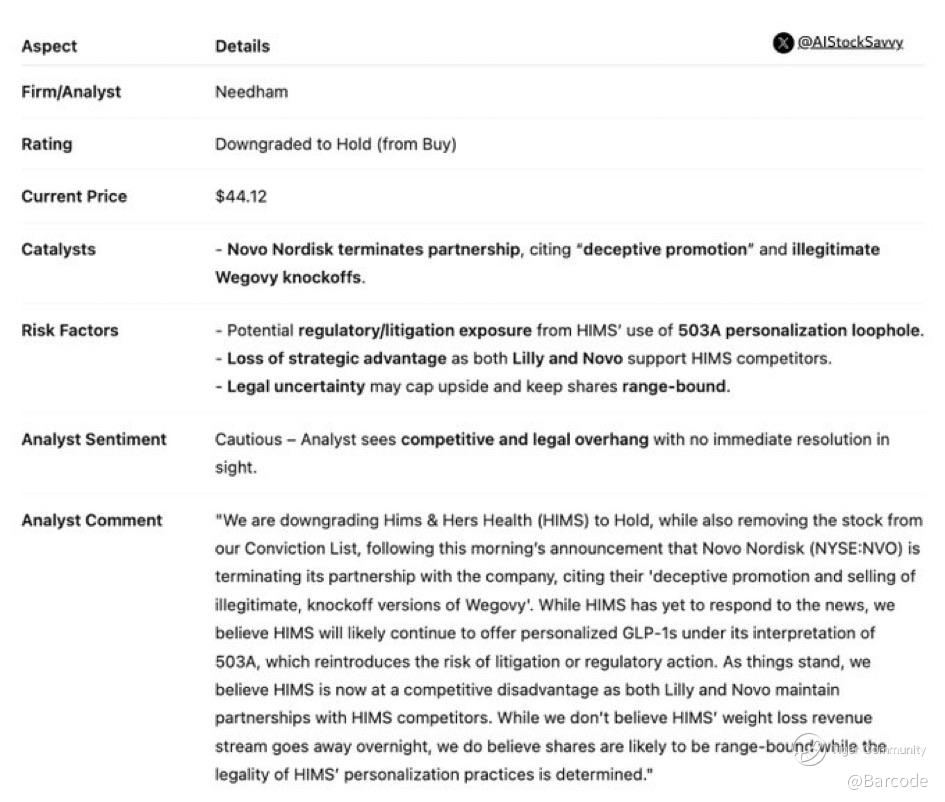 Needham’s note cited “deceptive promotion” and “illegitimate Wegovy knockoffs” as reasons behind Novo Nordisk’s decision to walk away. That’s a damning accusation, and it wasn’t subtle. Novo stated it would no longer distribute Wegovy through HIMS’ platform, cutting off access via NovoCare Pharmacy.