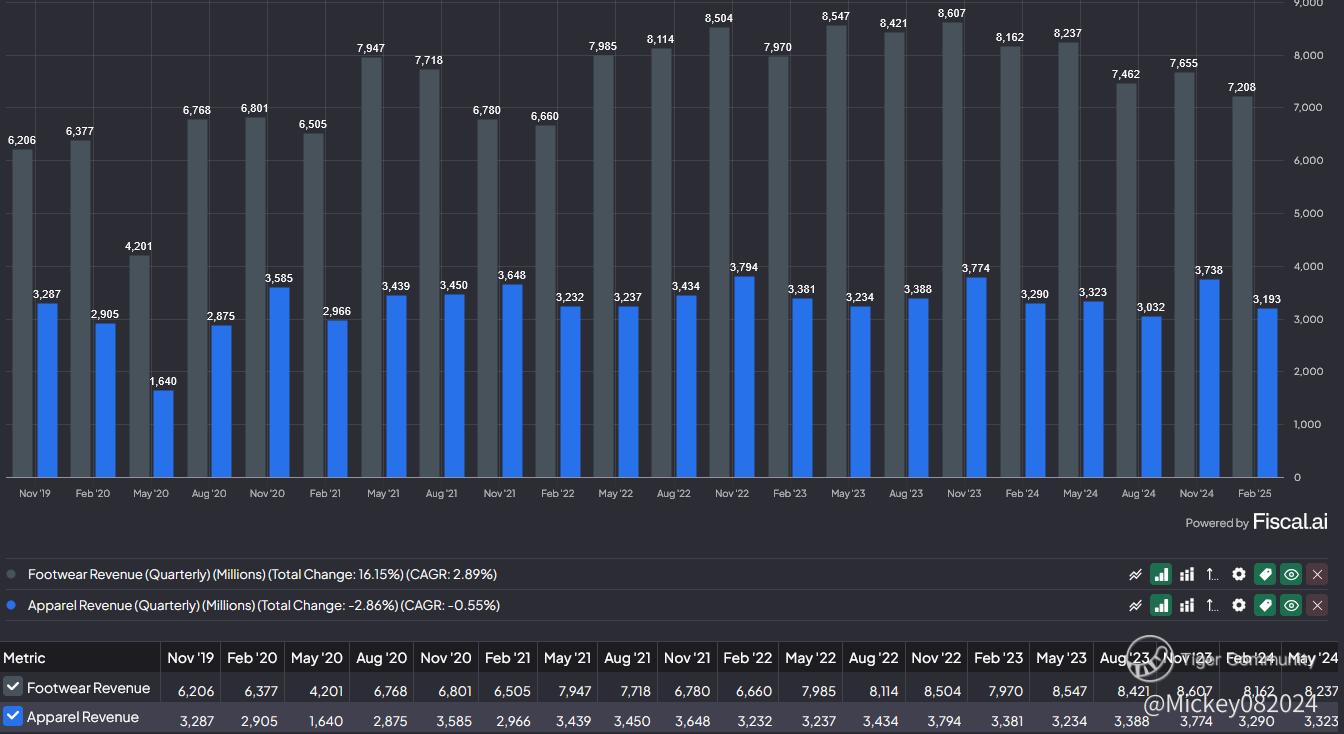 Nike’s last earnings report came on March 20, 2025, covering the three-month period that ended February 28. The numbers were underwhelming — not just in headline terms but also in the underlying trends.