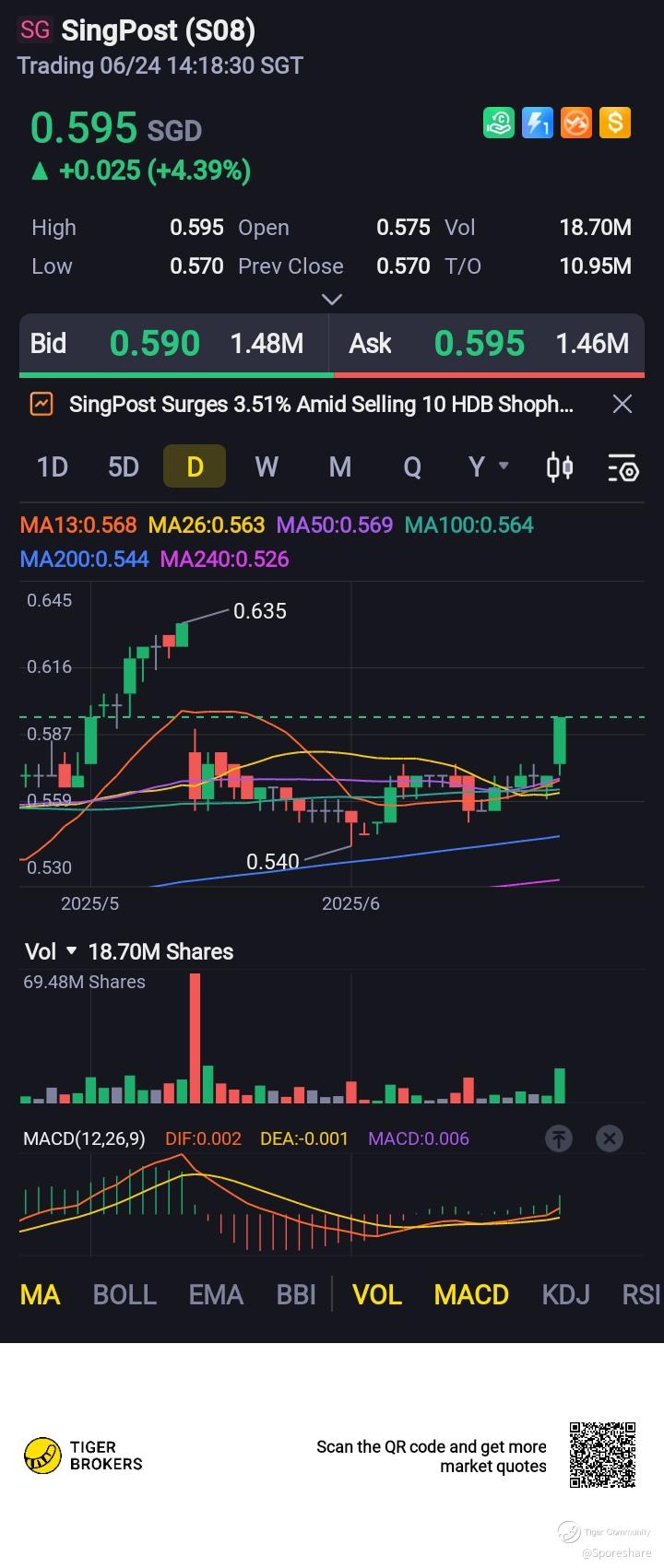Singpost - special dividend of 9 cents, xd 30th July 2025, likely to see price rising up to cover the Gapped at 63 cents.