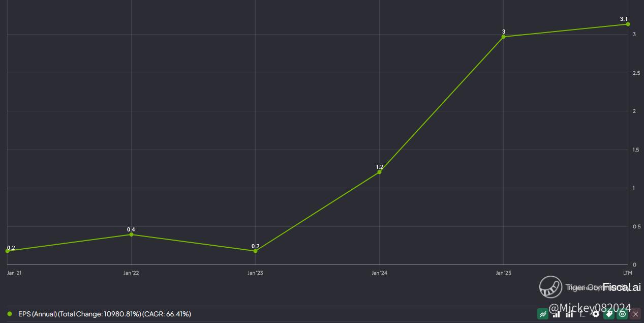 • Revenue growth: The company recently posted year-over-year revenue growth above 200%, driven by booming AI demand.