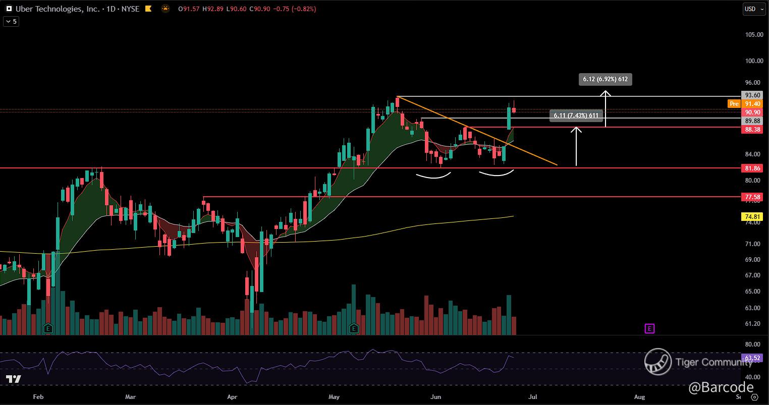 Profitable operations, accelerating autonomy, and concentrated institutional flow are converging. I continue to build between 90 and 92, targeting the first decisive close in triple digits and a valuation reset befitting Uberβs evolution into an autonomous logistics backbone.