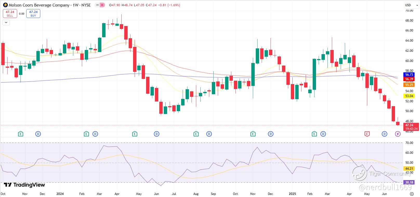 Molson Coors (TAP): The stock has plunged over 20% since April, driven by disappointing earnings. Its Relative Strength Index (RSI) has dropped to 19—its lowest since 2018—indicating extreme oversold conditions. Analysts remain bullish, with price targets ranging from $65 to $71, suggesting nearly 50% upside from current levels.