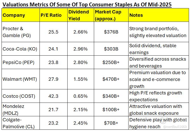 Procter & Gamble (PG) : A global titan in personal care and household products, $Procter & Gamble(PG)$ continues to lead with strong brand equity (e.g., Tide, Gillette, Pampers) and pricing power. Its focus on innovation and digital marketing has helped it maintain margins despite inflationary pressures.