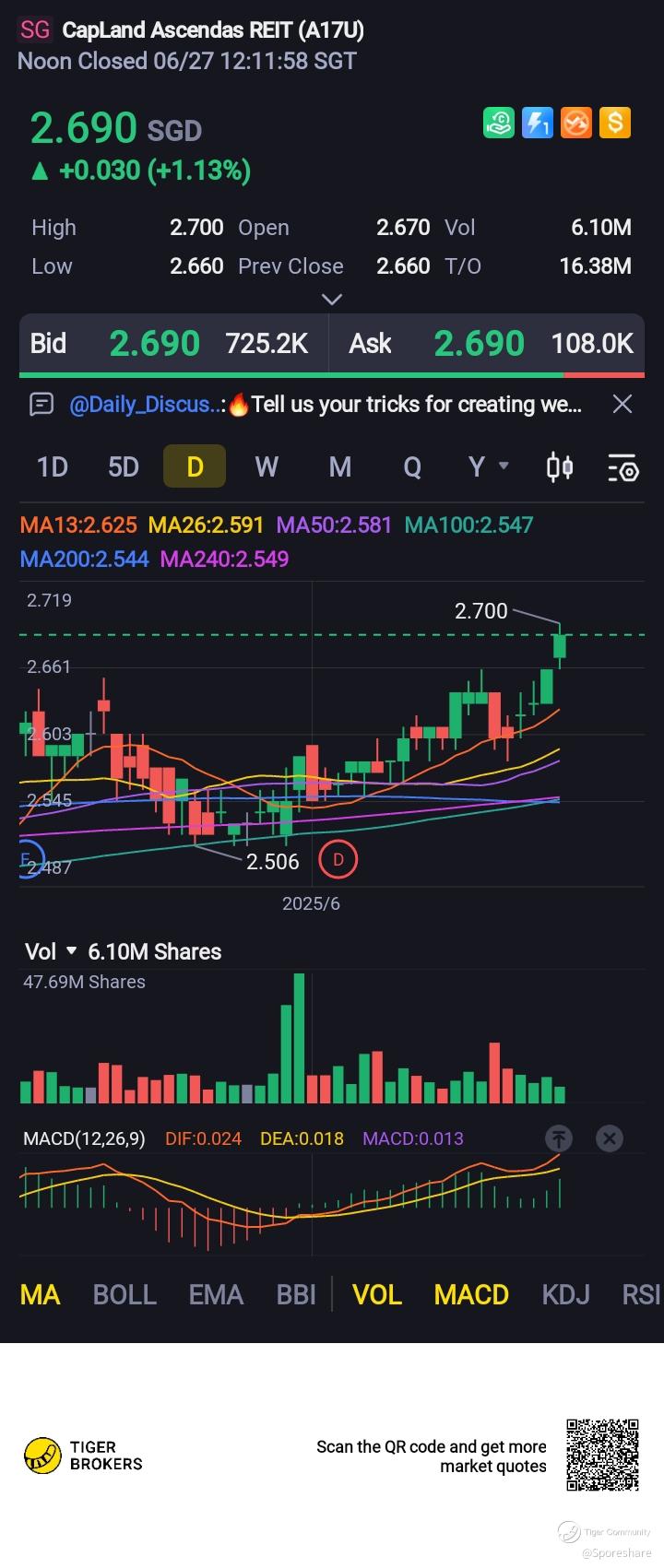 - Porter Harry·2025-06-27TOPWith yields softening, REITs like Ascendas could regain favor, especially if volume confirms a breakout. 📈 That said, keep an eye on upcoming earnings and macro signals—any surprises could shift sentiment quickly.1Report