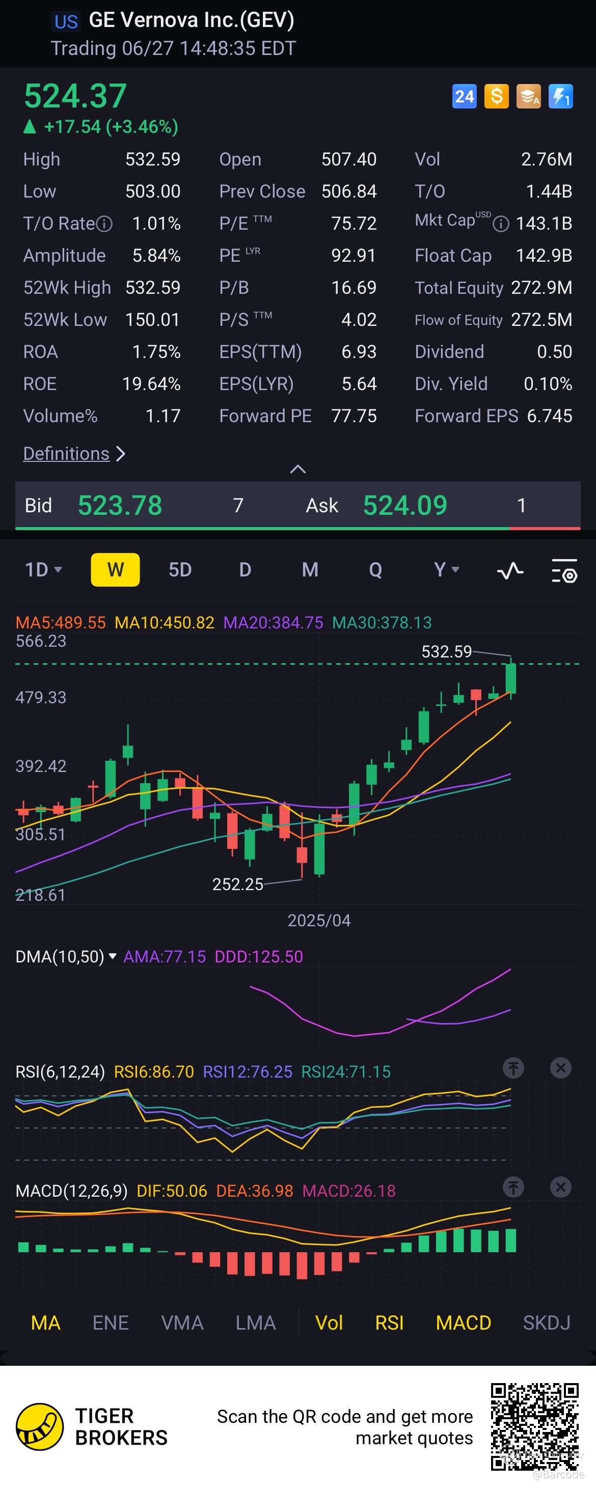 $GE Vernova Inc.(GEV)$ ⚛️ The nuclear energy chessboard just shifted. Price on $GEV has punched through 500, momentum is accelerating, and the grid upgrade narrative is finally catching fire. 28Jun25, 🇳🇿NZ Time