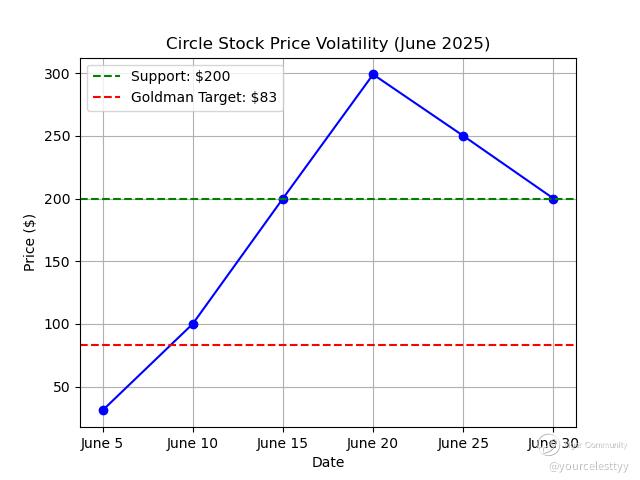 Circle Internet Financial ( $Circle Internet Corp.(CRCL)$ ) has been a rollercoaster in June 2025, plummeting 33% from a peak of $298.99 to $200 after a 700%+ year-to-date (YTD) rally from its $31 IPO price on June 5. Goldman Sachs’ recent initiation of coverage with a Neutral rating and an $83 price target, implying a 54% downside from $200, has sparked intense debate among investors. With a forward P/E of 307x, ARK Invest trimming $96.4 million in shares, and geopolitical tensions adding volatility, investors are grappling with whether Circle will dip below $100, if the $200 level is a buying opportunity, and what target price to aim for. This report explores Circle’s valuation, Goldman’s bearish outlook, potential price targets, and strategic investment approaches to navigate this volatile crypto stock.