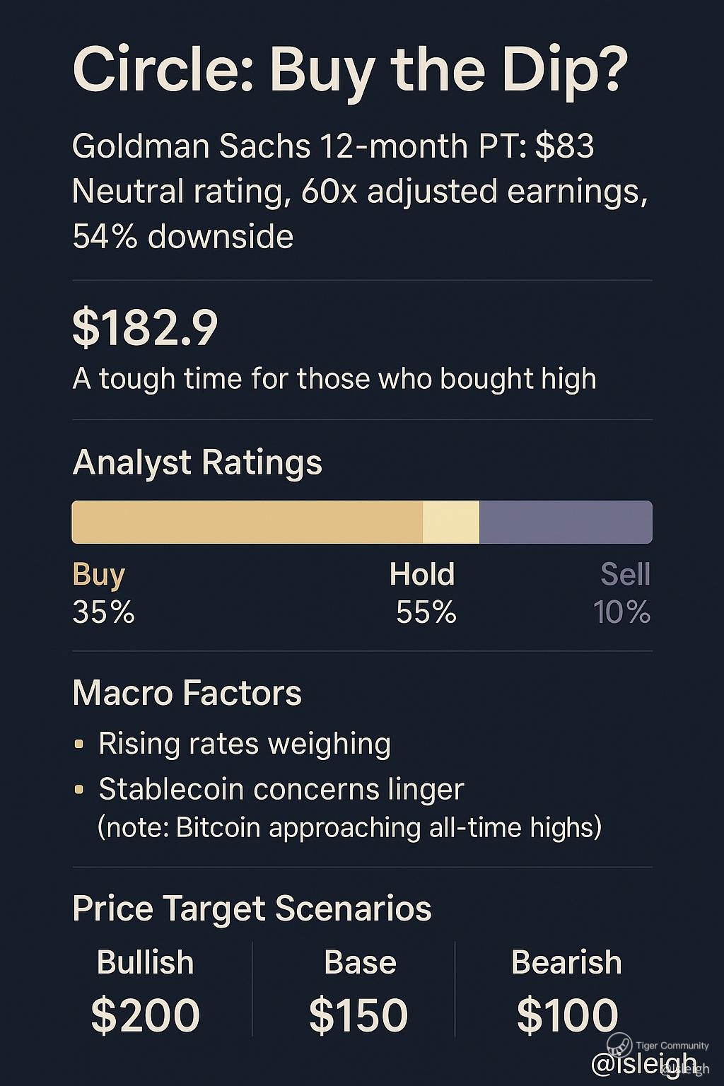 If you bought $CRCL near the highs, you're not alone. Many retail investors got in during the hype surge β only to be blindsided by Goldman Sachsβ Neutral rating and $83 price target, implying a brutal 54% downside from current levels ($182.90).
