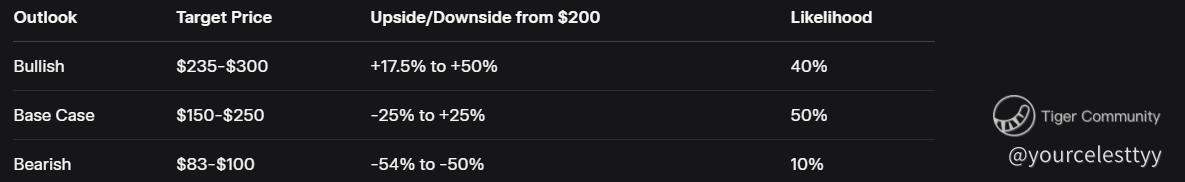 Base Case ($150-$250): Balances growth potential with valuation risks, likely if regulatory progress stalls or profit-taking continues. The $200 support level is critical, with $150 as a near-term floor and $250 as a reasonable upside if momentum resumes.