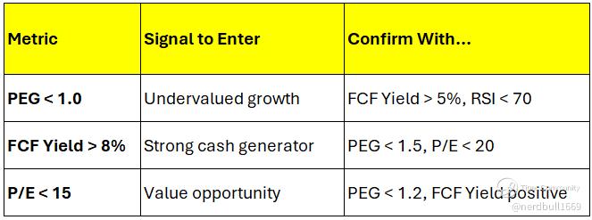 I believe that by using valuation metrics like PEG, Free Cash Flow (FCF) Yield, and P/E can give me a powerful edge when timing my stock entries.