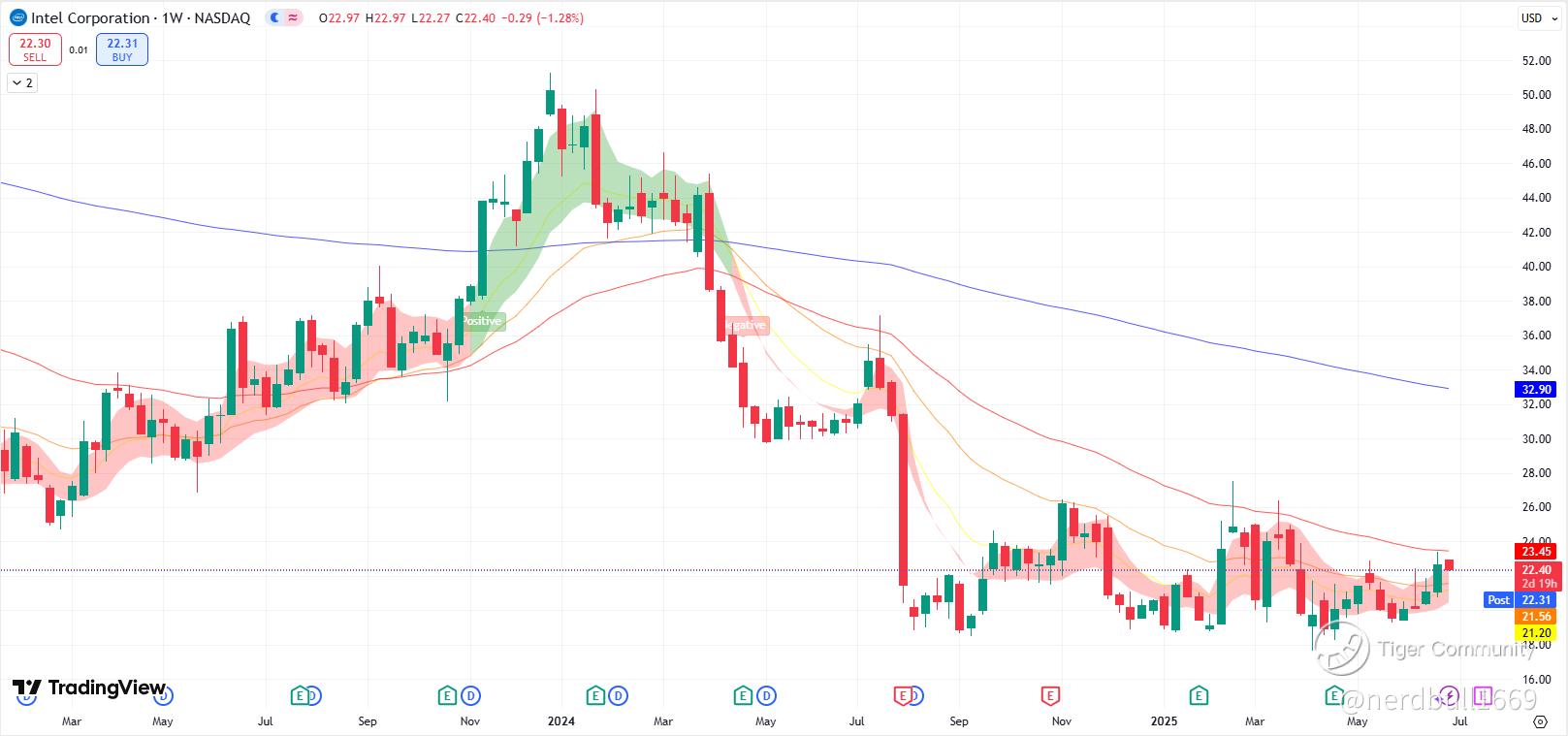INTC bulls are looking to regain control of the uptrend, and they need to clear the 50-day MA period, as currently the momentum is in the negative zone, and INTC seems to be trading in consolidation for most of June 2025. So I would not be putting much loading on INTC, but will be looking for potential opportunities if INTC manage to break out into positive momentum.