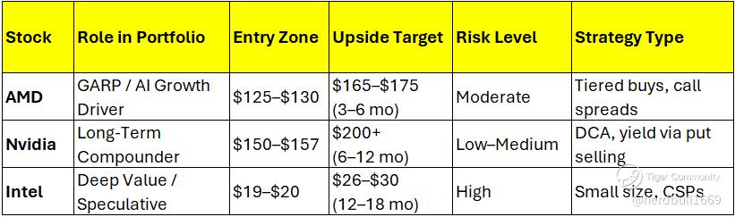 Asymmetric Upside: AMD and Intel offer potential for re-rating; Nvidia provides strength and long-term compoundability.