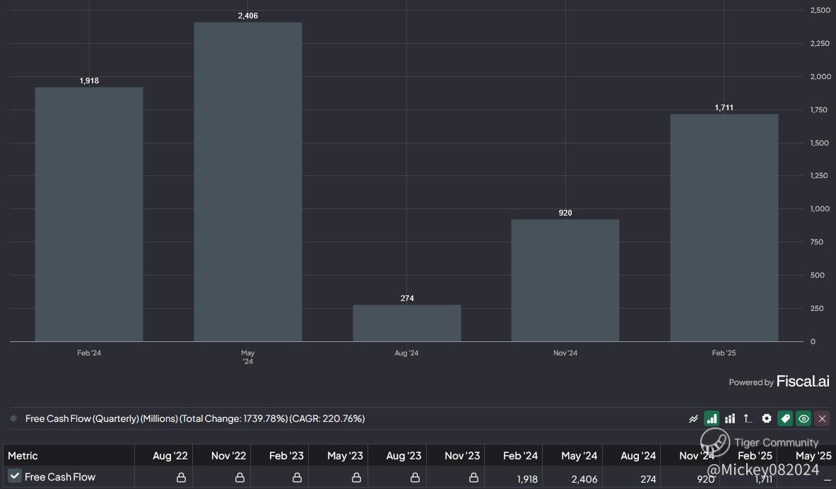 In the third quarter of fiscal year 2025 (ending February 28, 2025), Nike generated approximately $1.71 billion in free cash flow. This figure represents the company’s cash generated from operations minus capital expenditures.