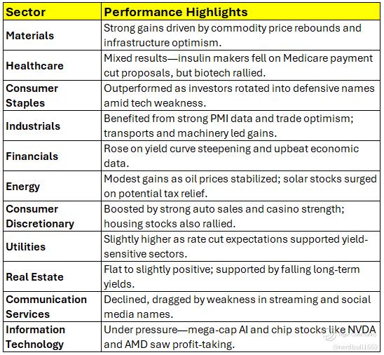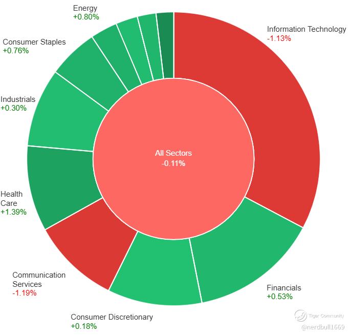 The Information Technology sector underperformed, with the $NASDAQ(.IXIC)$ falling 0.82%, largely due to profit-taking in mega-cap AI and chip stocks.