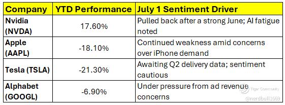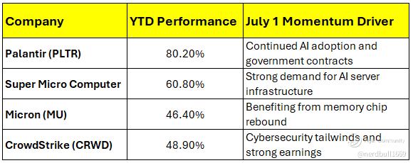 Software & Cybersecurity names held up better, with $CrowdStrike Holdings, Inc.(CRWD)$ and $Palantir Technologies Inc.(PLTR)$ showing resilience despite losing 3.38% and 4.14% on 01 Jul.