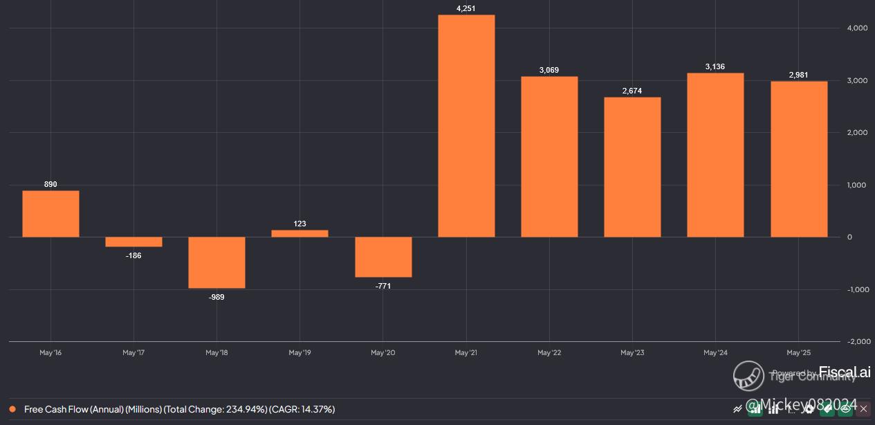 Management guided for $4.5 billion to $5.0 billion in FCF for FY2025, assuming continued margin expansion and modest revenue recovery. This FCF strength supports dividend growth, buybacks, and potentially deleveraging.