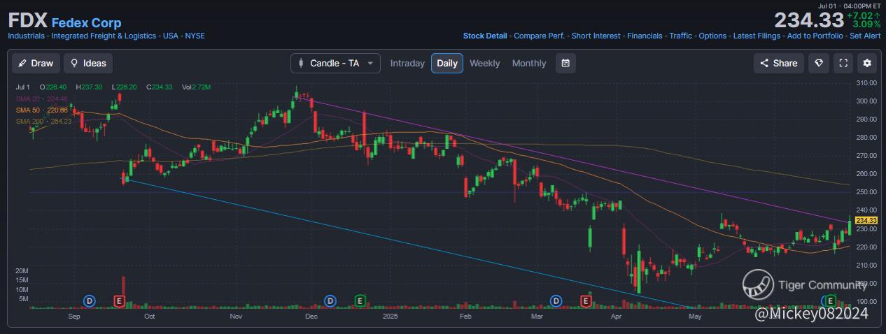 - Merle Ted·07-02Just saw on briefing that FDX was upgraded to a buy. Price target $262LikeReport