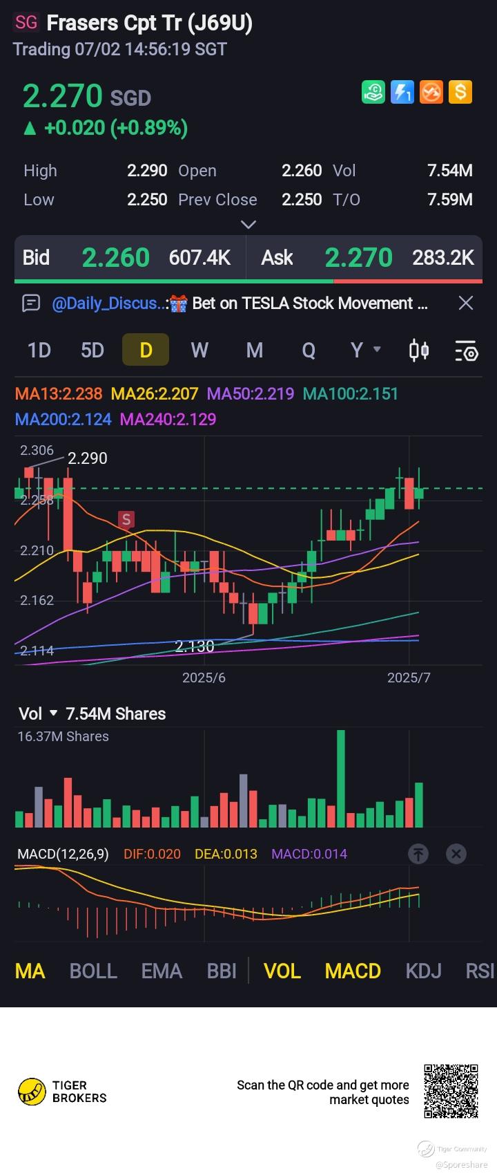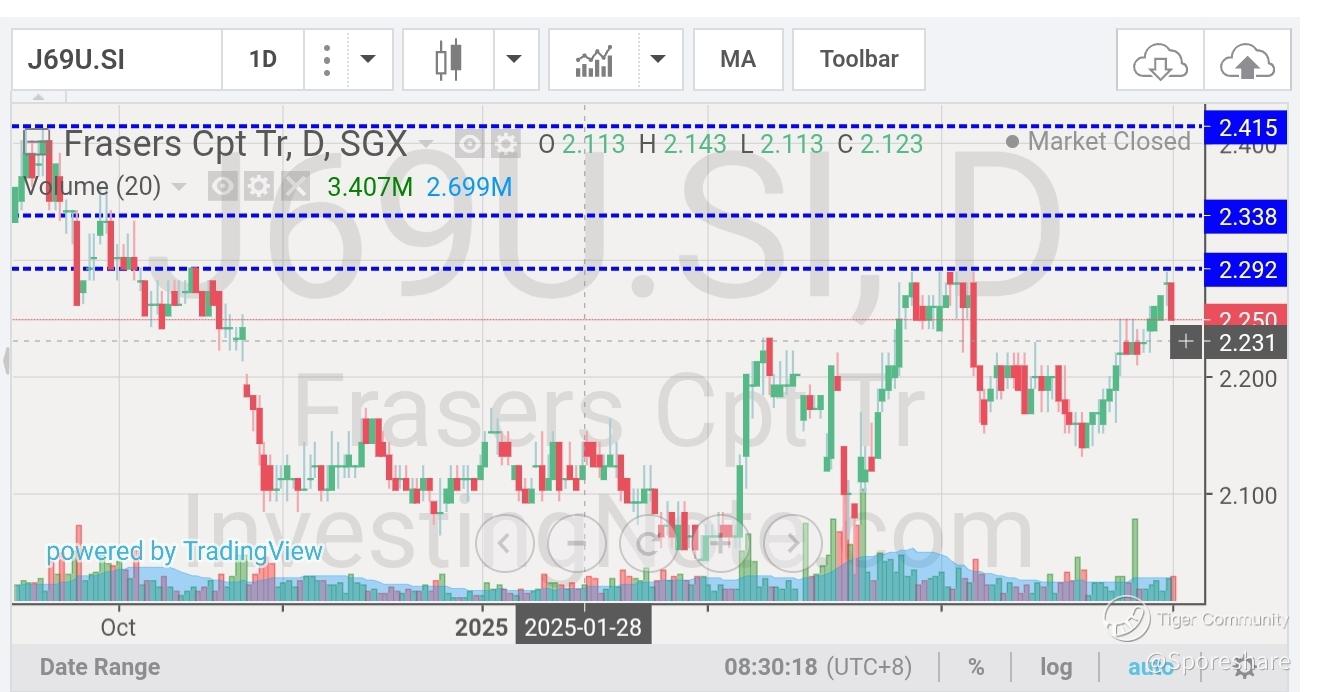 Frasers Cpt Tr - She is rising up to retest 2.29 . A nice breakout smoothly accompanied with gd volume we may see her rising up further towards 2.34 and above!