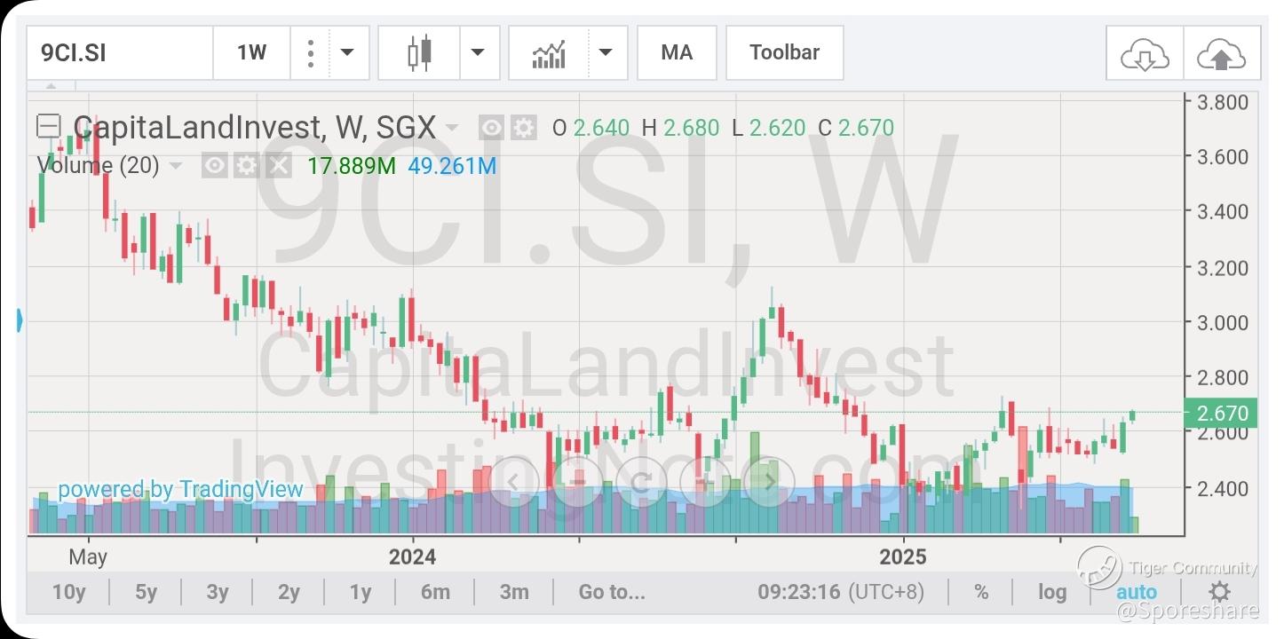 CapLand Investment (9CI.SI) - total dividend of about 18.6 cents including special dividend species of 0.031 CICT share, XD 2nd May. Paydate 13 May 2025. Fantastic!