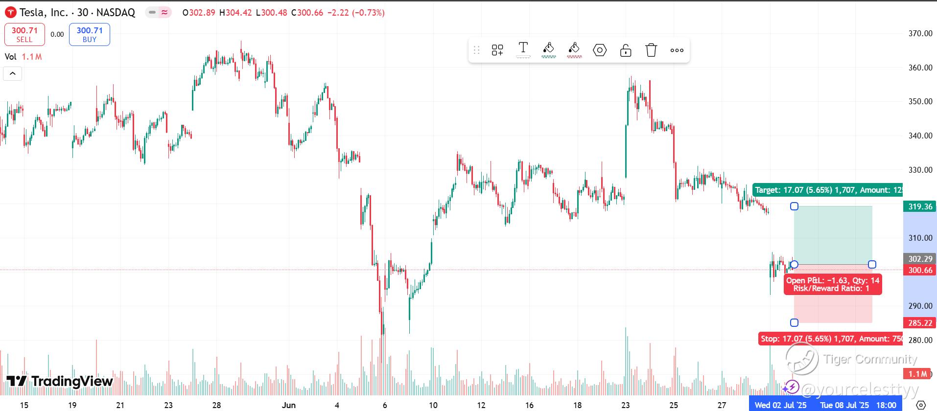 Strategy: Grab shares at $295-$300, aim for $350, set a stop at $285. A Robotaxi breakthrough could juice gains further.