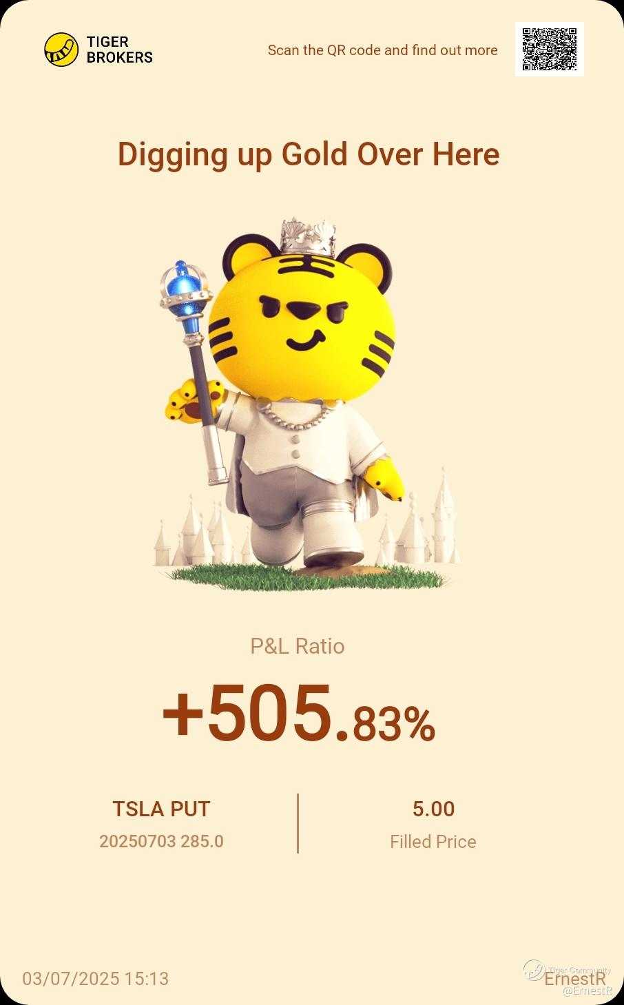 I made my bank on the spat and bailed - if you're short, know when to dip! $TSLA 20250703 285.0 PUT$