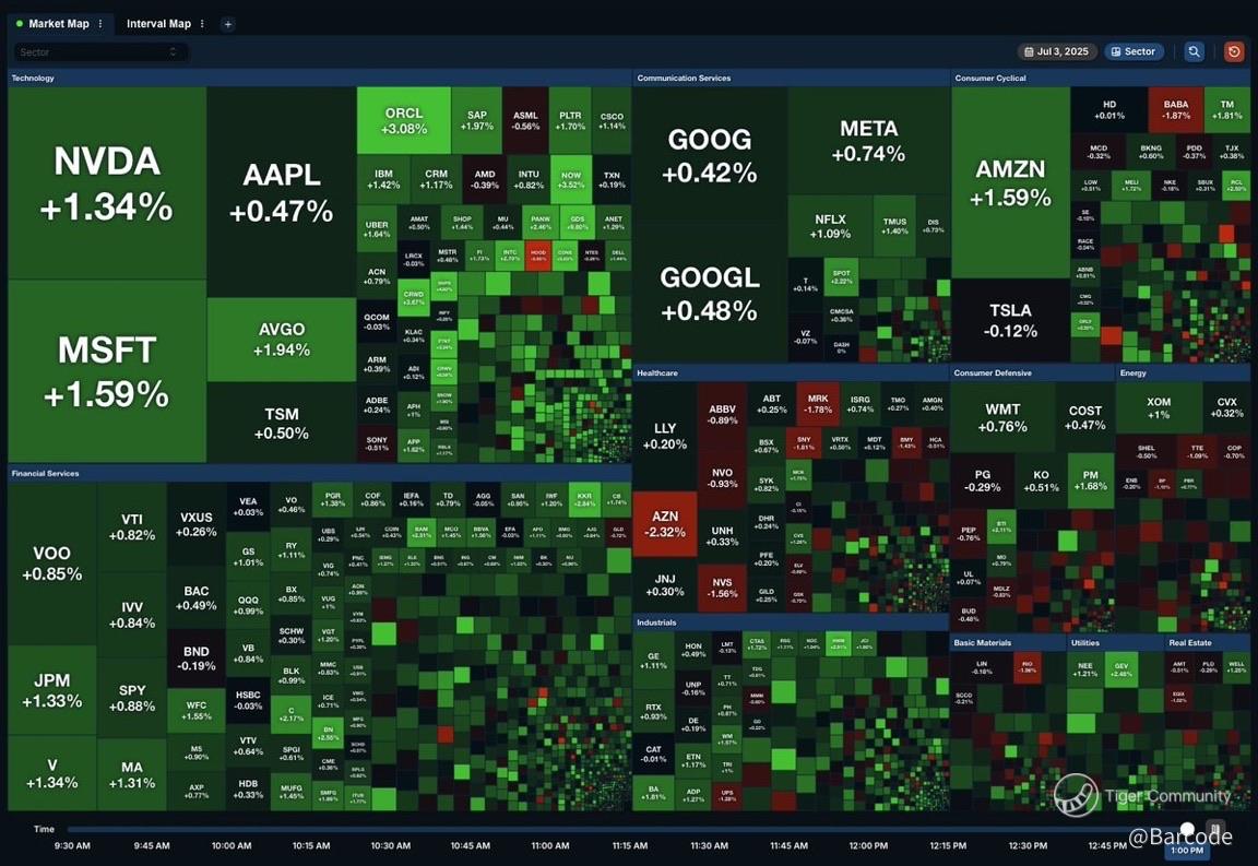 🧠 Sector Map: Tech Leads, But Strength Was Broad-Based