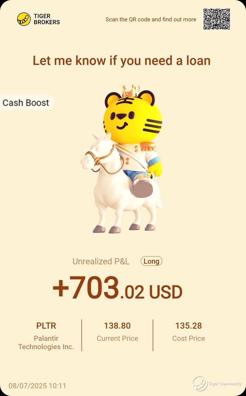 $Palantir Technologies Inc.(PLTR)$ , the undisputed king of big data, has soared to a new high again! The current share price stands at $138.80, up 2.6% from the $135.28 entry point, locking in a solid $703.02 in gains. As a leading AI-driven data analytics powerhouse, Palantir is seeing sustained growth in government contracts and stronger-than-expected momentum from commercial clients. Its AIP platform is sparking a new wave of enterprise AI adoption. With earnings season ahead, confidence remains high — holding firm for what’s next!