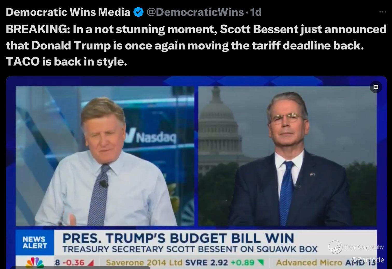 And the kicker? This isn’t theoretical. Treasury Secretary Scott Bessent just stunned markets, confirming the U.S. has already collected $100B in tariff revenue, and added, “we could expect that that could be well over $300B by the end of the year.” That’s not a pending policy, it’s already a fiscal weapon in motion. Markets are reacting to headlines, but the real storm may be the Treasury’s underlying strategy to monetise tariff inflows as a budgetary shock absorber.
