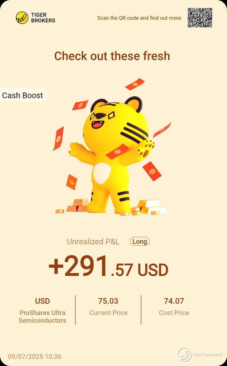 $ProShares Ultra Semiconductors(USD)$ The semiconductor rally couldn't be better timed! Staying true to my conviction pays off as AI and consumer electronics fuel this leveraged ETF's advantage. The market rewards patience - holding for greater gains ahead! Wishing everyone profitable trades!