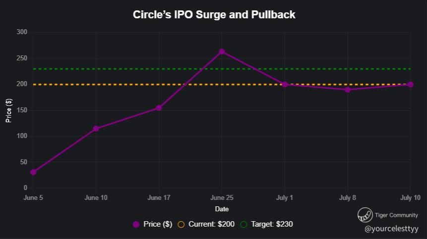 Technical Momentum: Circle's stock has been volatile since its IPO, with a 52-week range of $31 to $263.45. The recent breakout above $200 could signal a move toward $220-$230 if momentum holds.