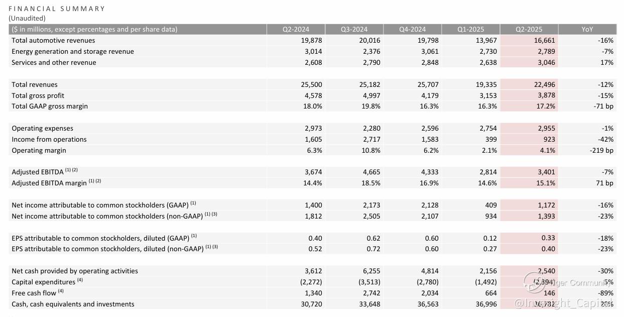 After the U.S. market closed today, Tesla $Tesla Motors(TSLA)$ released its latest Q2 earnings report — and the results were undeniably dismal. Both revenue and profits saw significant year-over-year declines, marking the company's steepest quarterly drop in years. However, the stock initially rose slightly in after-hours trading, only to reverse course and fall 4% after Elon Musk issued a rare “pessimistic warning” during the earnings call.