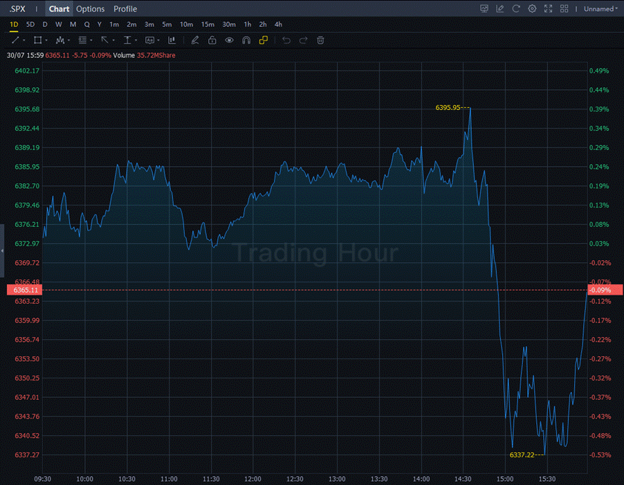 The $S&P 500(.SPX)$ Closed lower today for the third day in row after trading near record highs earlier in the session. The index rallied into the close but gave up its early gains this morning after the Federal Reserve kept interest rates steady, as was largely expected by Wall Street, but in the accompanying Q&A session Fed Chair Jerome Powell signalled that the central bank isn’t quite ready for rate cuts.