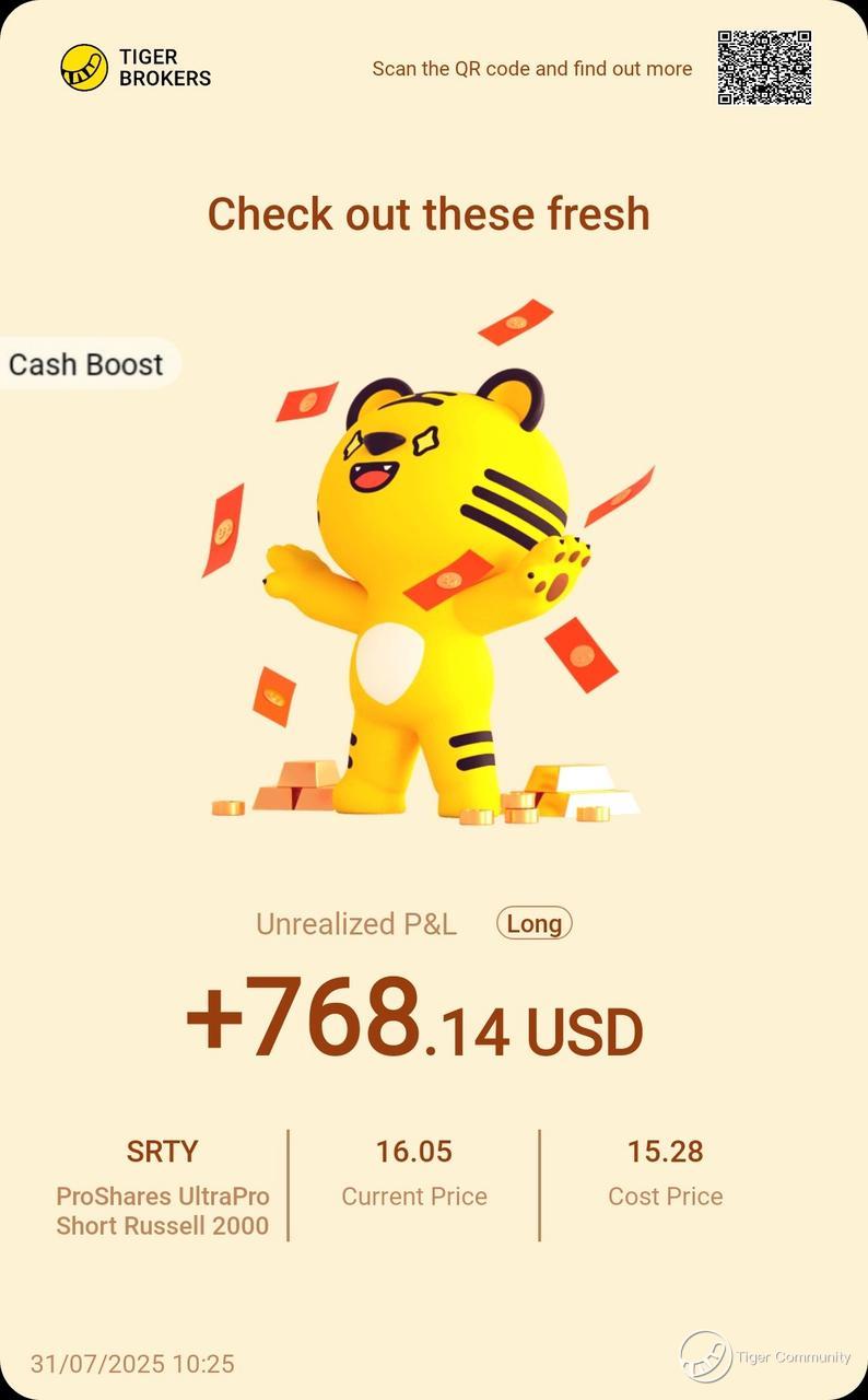 $ProShares UltraPro Short Russell 2000(SRTY)$ trade nets $768 unrealized gain! Shorting small-caps paid off amid macro uncertainty. Rate fears and weak earnings drove the dip—sticking to tactical bearish plays with tight risk controls.