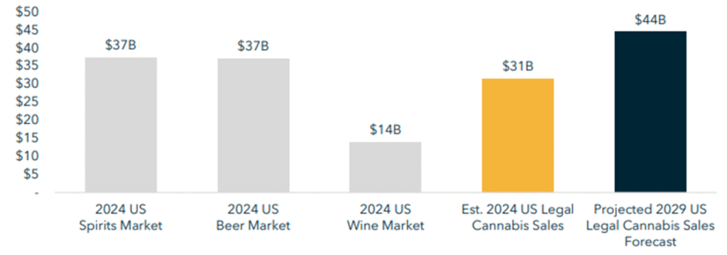 Approximately 54% of Americans now live in a state where recreational cannabis is legal, with an additional 19% living in a state with only medical cannabis being legal. Combined, IIPR has exposure to 68% of the US population. As of 2024, IIPR estimates that there were $31 billion in revenues in the US from legal cannabis sales, with that number projected to increase to $44 billion – rivaling the beer and spirits market.