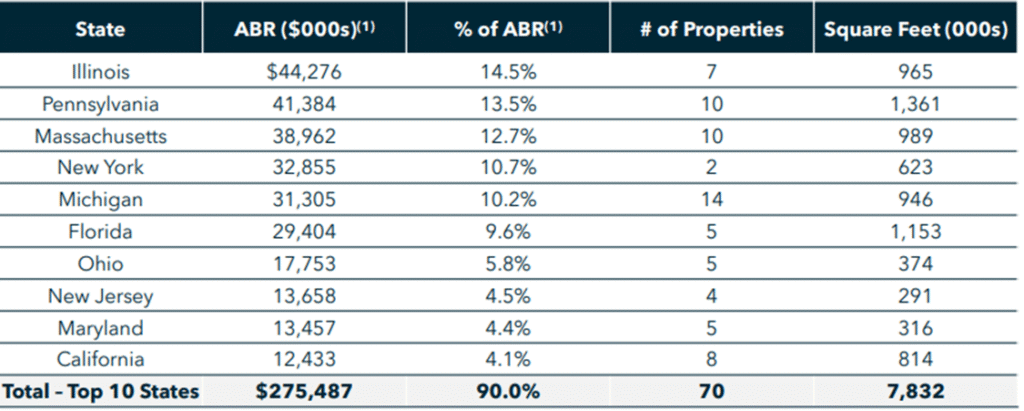 On top of the 8.3 million leasable square feet, IIPR has 1.2 million leasable square feet under development or redevelopment across 19 states. The major developments are a total of 491,000 rentable square feet, with 2 facilities in California and 1 in Texas. One of the California properties is pre-leased, with the other two still under construction.