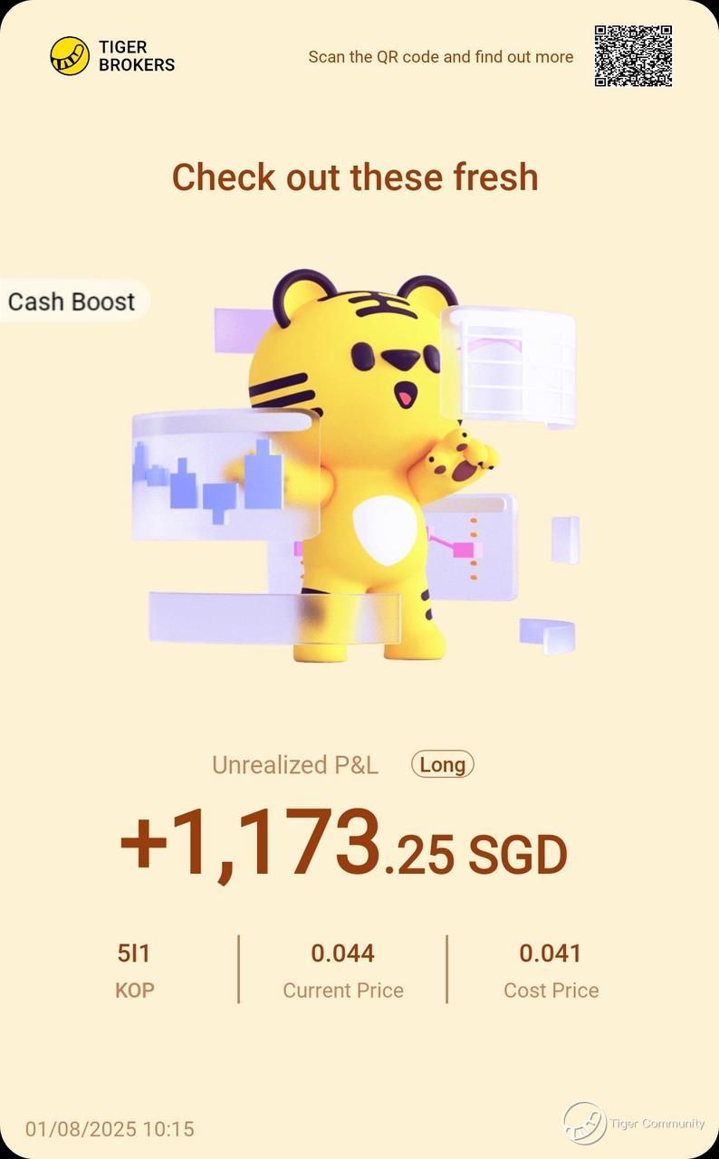 $KOP(5I1.SI)$ 's asset revaluation thesis plays out with 1173 SGD gain. Bullish on its Marina Bay premium location and REIT consolidation potential, accumulating on dips for tourism rebound.