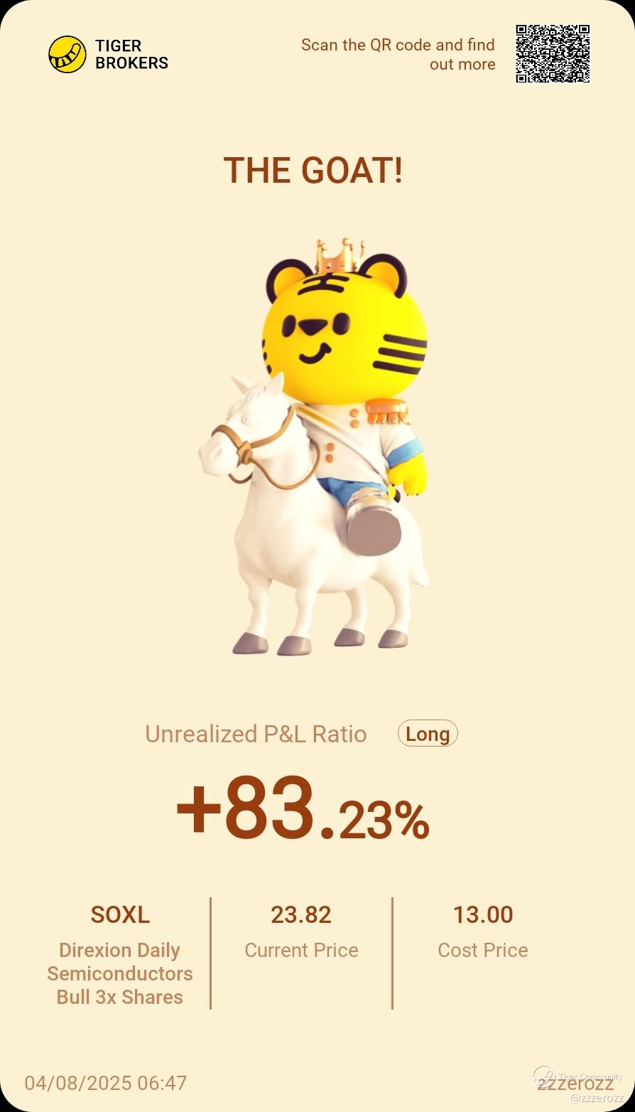 $Direxion Daily Semiconductors Bull 3x Shares(SOXL)$ bought during April tariffs
