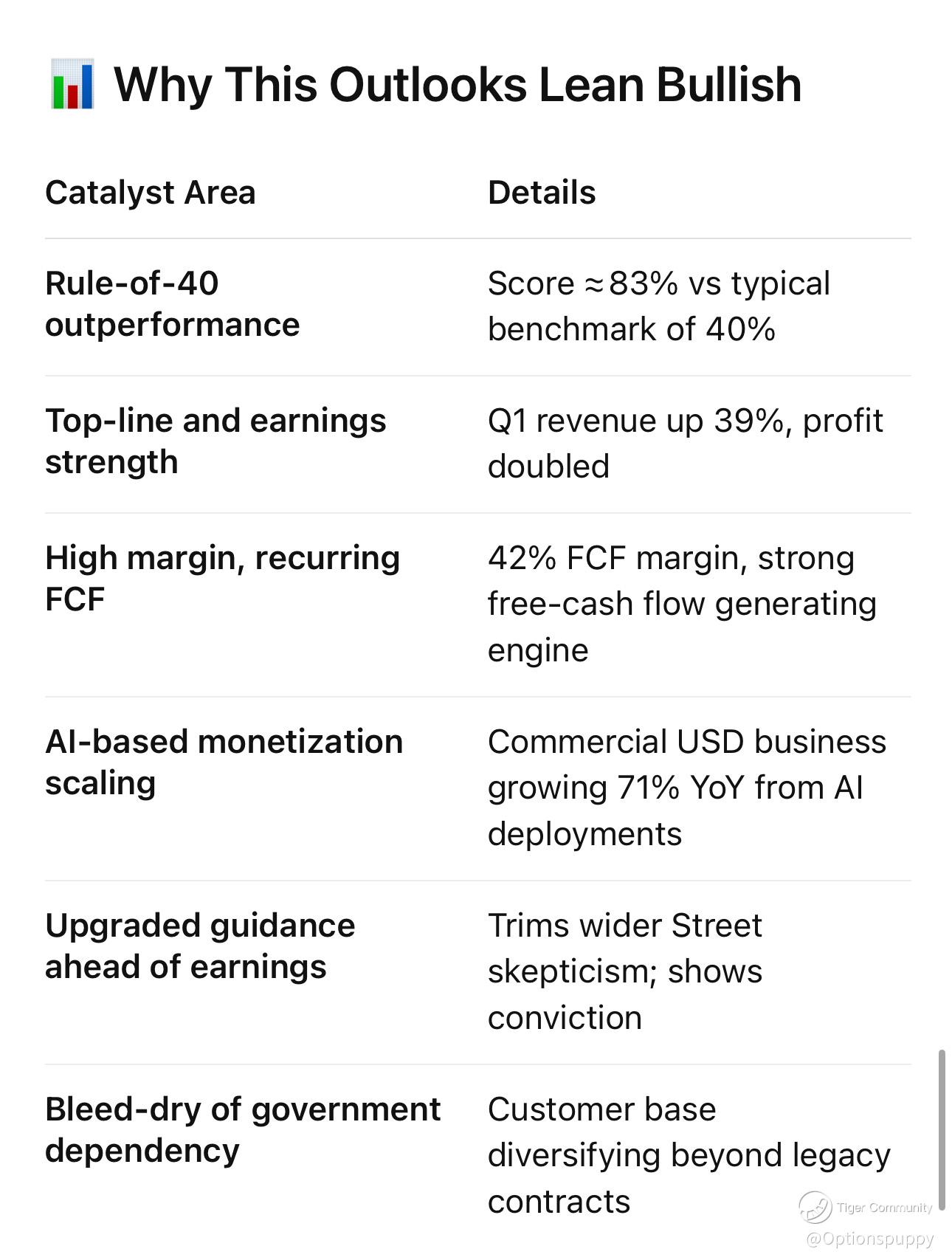 This isn’t speculative hype—it’s grounded in real, quantifiable momentum: exceptional revenue acceleration, record FCF generation, expanding AI-powered client base, and raised full-year guidance. That combination makes a strong case for being bullish heading into earnings.