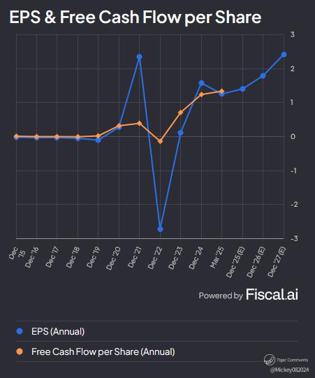 Shopify’s transition back to an asset-light model has rejuvenated its financial profile. Gross margins have rebounded to ~52%, while free cash flow margins have expanded due to reduced logistics overhead. With SaaS-style revenue streams from subscriptions, transaction fees, and B2B services, Shopify enjoys high incremental margins and scalability.
