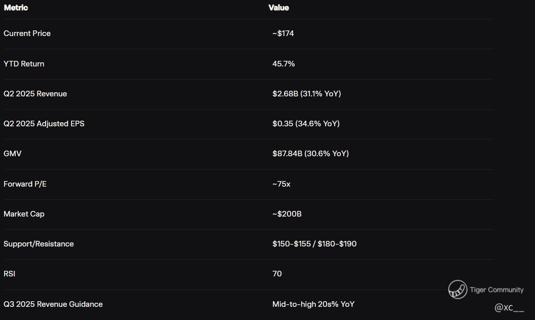 Tariff Pressures: Tariffs (30% on EU/Mexico, 35% on Canada, effective August 1) could raise costs for merchants, potentially slowing GMV growth, per Reuters.