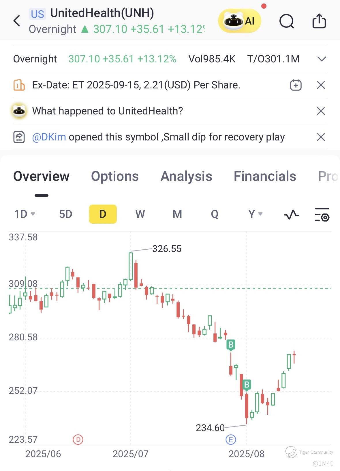 $UnitedHealth(UNH)$ Successfully caught the falling knife. Hope it can go down below $200 but seems like no hope already. Last week everyone say a dying stock, cannot buy. Now suddenly everyone say buy buy buy. To me, buying a megacap stock with a growing business at PE 10 is a safe bet.