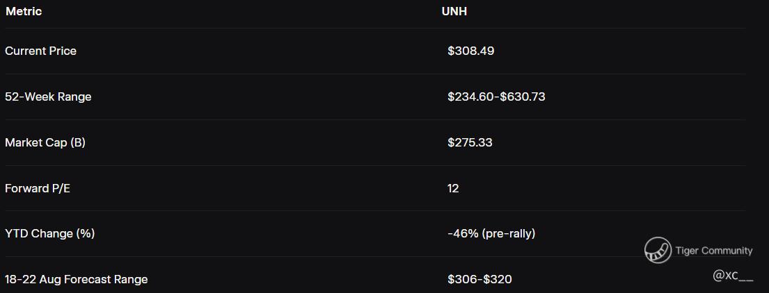 $UnitedHealth(UNH)$ Wall Street’s biggest names are betting big on UnitedHealth Group (UNH), with Warren Buffett’s Berkshire Hathaway leading the charge alongside Renaissance Technologies, David Tepper’s Appaloosa Management, and Michael Burry’s Scion Asset Management. As of August 19, 2025, UNH closed at $308.49, a stunning 11.98% jump in 24 hours, fueled by these heavyweight investments. With the S&P 500 at 6,466.58, Bitcoin at $124,002, and oil at $75/barrel amid 30-35% tariffs, the rally stands out, though the VIX at 14.49 suggests calm waters—or a brewing storm. Trading at a P/E of 12, near a decade-low valuation, UNH’s plunge from $630.73 to $234.60 over the past year has sparked a buying frenzy. Can it close above $200 this week, or is this a trade to miss? This breakdown explores the momentum, risks, and strategies to ride or dodge the wave.